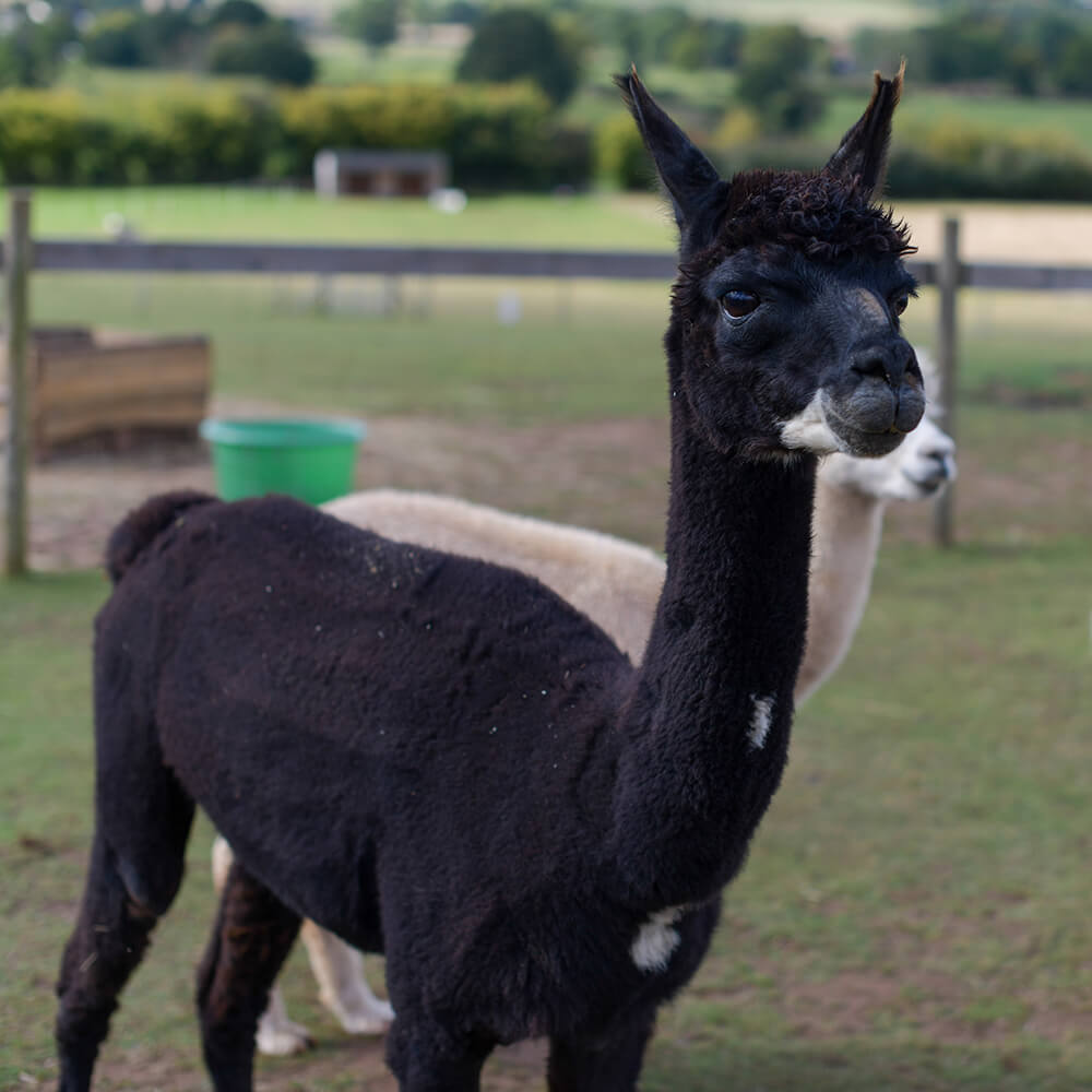 Hello, I'm Eddie! I am a male alpaca, I was born 7th June 2010, and I am a huacaya alpaca. My dad was a light fawn and my mum was a mid-brown/white, I am black and white. I am part of the trekking team, I love going out for walks and meeting all of our lovely guests, I can be a little mischievous at times; mummy says I am greedy, as I’m always first at the feed trough!